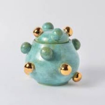 Cerâmica queimada em alta temperatura, e bolas em ouro 12k.