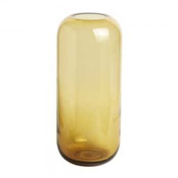 VASO DE VIDRO AMBAR COM BASE ARREDONDADA.